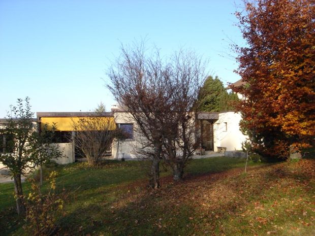 Cadre verdoyant, agrandissement d'une villa mitoyenne au centre de Bulle, avec son jardin potager côté entrée et un jardin arborisé côté séjours.